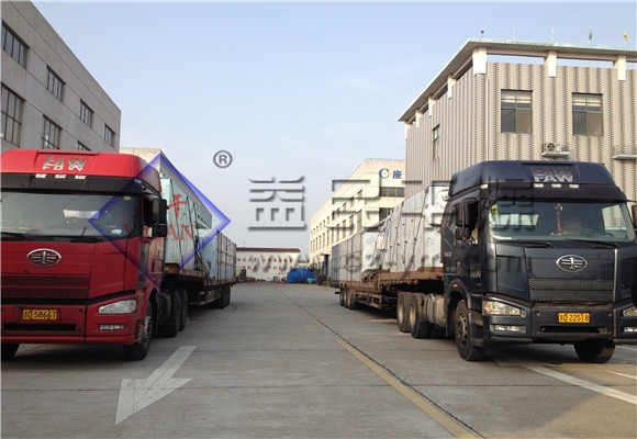 今日下午,吉林某藥廠訂購(gòu)的2台DWF-2-18帶式幹燥機、8台CT-C-IV四門八車熱風循環(huán)烘(hōng)箱裝車發貨。