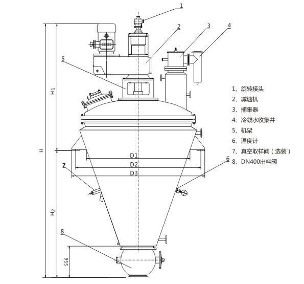 錐(zhuī)形螺帶混(hún)合/幹燥機(jī)裝填率為有效工作容積的30%—100%,在(zài)此範圍內不同裝料量的混合(hé)和幹(gàn)燥都可以(yǐ)得到一(yī)致的結果。